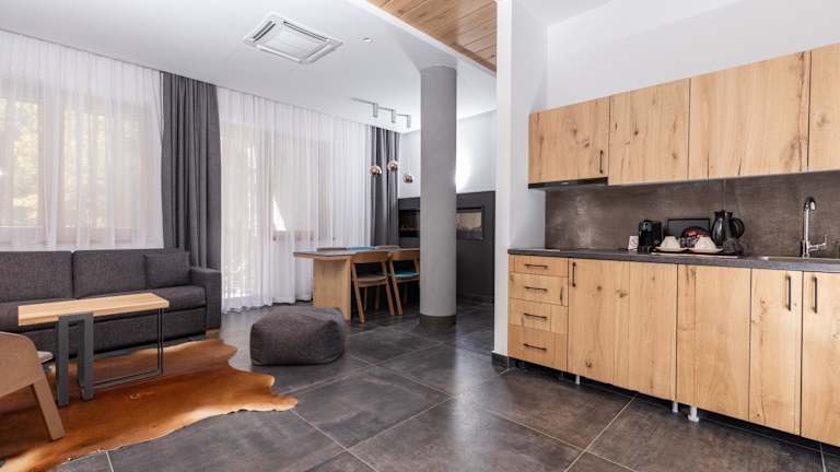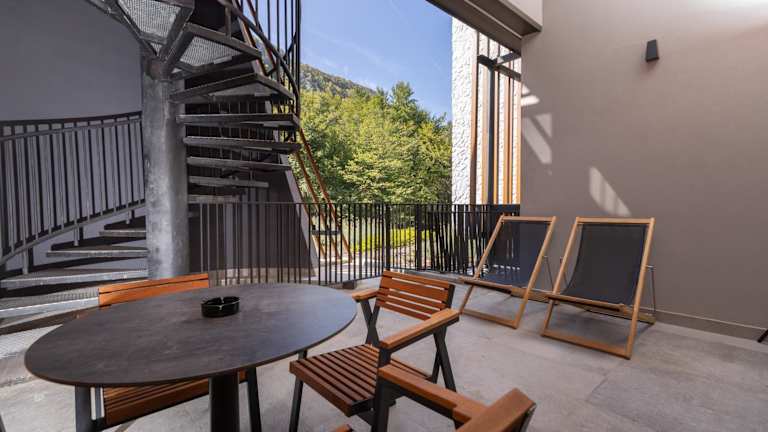 Das Hotel Ramonda bietet zahlreiche Annehmlichkeiten, darunter eine Bar, ein Restaurant, einen Garten sowie einen Whirlpool und ein türkisches Dampfbad. Ein Spa- und Wellnesscenter mit Fitnessraum, Innenpool und Sauna sorgt für eine entspannende Atmosphäre. Die Terrasse ist für alle Gäste zugänglich und lädt zum Verweilen ein.