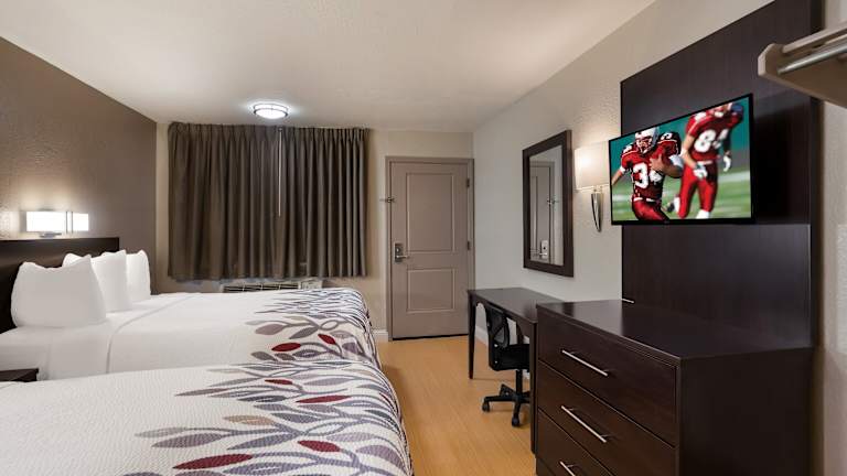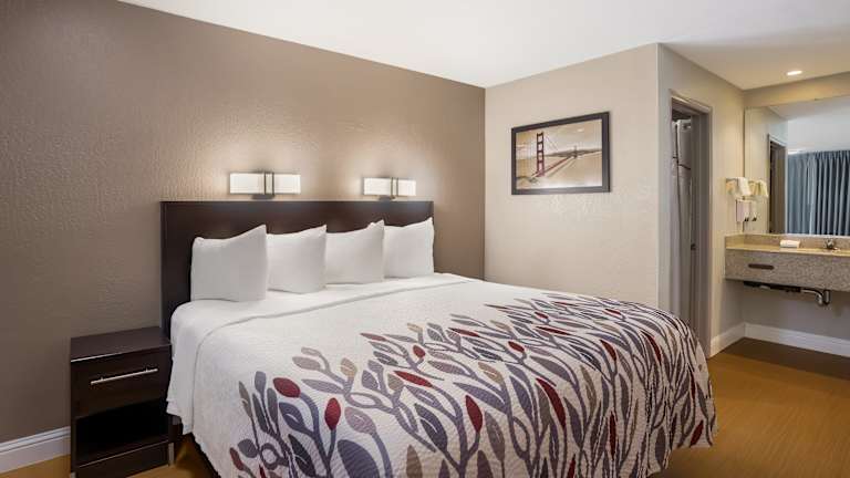 Die Zimmer im Red Roof Inn Stockton sind mit einem Flachbild-Kabel-TV, Mikrowelle, Kühlschrank, Schreibtisch und einem Sitzbereich ausgestattet. Bettwäsche und Handtücher werden gestellt, und einige Zimmer bieten zusätzlich eine Kaffeemaschine. Bei einem Aufenthalt von 1 bis 6 Nächten erfolgt täglich eine Reinigung, während bei einem Mindestaufenthalt von 7 Nächten die Reinigung einmal pro Woche stattfindet.