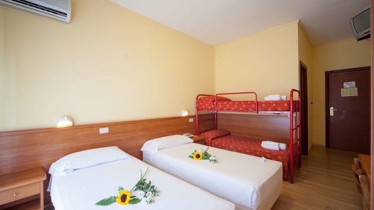 Die klimatisierten Doppelzimmer verfügen über Balkon oder Terrasse, TV, Telefon mit Direktwahl, sowie WLAN. Die Badezimmer sind mit Dusche, Badewanne, Bidet und Haartrockner ausgestattet. Kosmetikartikel stehen den Gästen ebenfalls zur Verfügung.