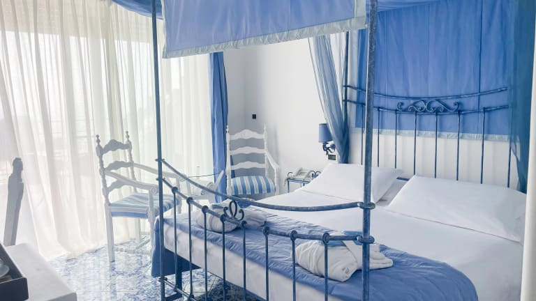 Das Hotel Regina Cristina bietet 55 Nichtraucherzimmer auf 5 Etagen, die bequem mit dem Aufzug erreichbar sind. Die Zimmer sind klimatisiert und verfügen über Sat-TV. Sie wurden in den 1990er-Jahren komplett renoviert und im neoklassischen Stil gestaltet, wobei regionale Handwerkskunst und Keramik verwendet wurden. Einige Zimmer verfügen über einen Balkon und eine Whirlpool-Badewanne. Die Zimmer in der 4. Etage bieten einen atemberaubenden Blick auf das Mittelmeer.