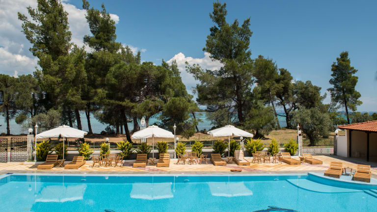 Das Hotel Rema liegt im Zentrum von Vourvourou, nur wenige Meter vom Strand entfernt. Die Umgebung ist geprägt von grüner Vegetation und malerischen Bergen von Chalkidiki, während der beliebte Strand Karidi nur 1,5 km entfernt ist. Ormos Panagias, von wo Boote zum Berg Athos ablegen, befindet sich 8 km vom Hotel entfernt. Nikiti ist 15 km und das malerische Dorf Agios Nikolaos 12 km entfernt.