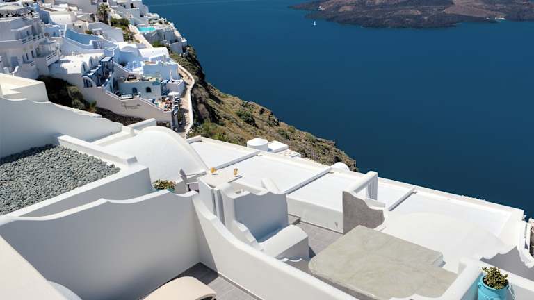 Das Hotel Remvi Villas liegt in Firostefani, einem der bekanntesten Dörfer an den beeindruckenden Klippen von Santorini. Die Umgebung bietet einen atemberaubenden Panoramablick auf den Vulkan, die Caldera und die Ägäis. Der nächste Flughafen, Flughafen Thira, befindet sich in 5 km Entfernung.