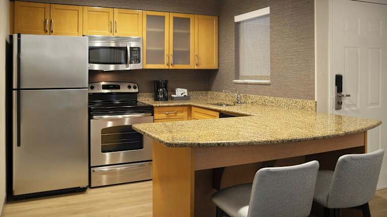 Die Suiten sind geräumig und mit einer voll ausgestatteten Küche, einem Sitzbereich, Klimaanlage und Heizung eingerichtet. Jedes Zimmer verfügt über ein Doppelbett, ein Sofabett sowie eine Kochnische mit Kühlschrank und Mikrowelle. Zur weiteren Ausstattung zählen ein Safe, eine Minibar, ein TV-Gerät mit Kabelanschluss, WiFi ohne Gebühr und ein Badezimmer mit Dusche und Badewanne. Rollstuhlgerechte Zimmer sind ebenfalls verfügbar.