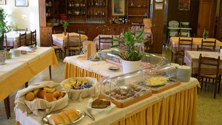 Das Hotel bietet ein Frühstücksbuffet mit einer Auswahl an feinen Wurst- und Käsesorten, Croissants, Fruchtsäften und heissen Getränken, das entweder im Innenbereich oder im Freien auf der Terrasse serviert wird. Des Weiteren stehen ein Speiseraum, ein Café und eine Bar zur Verfügung, die zusätzliche Snacks und Erfrischungen anbieten.