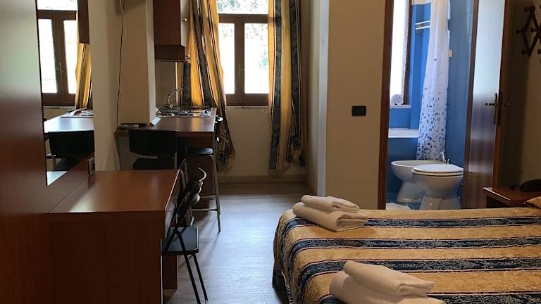Die Zimmer und Apartments sind in neutralen Farbtönen gehalten und präsentieren sich in einem schlichten, klassischen Design mit Fliesenböden. Alle Unterkünfte sind mit Kabel-TV, einem eigenen Badezimmer mit kleiner Badewanne und Haartrockner ausgestattet.