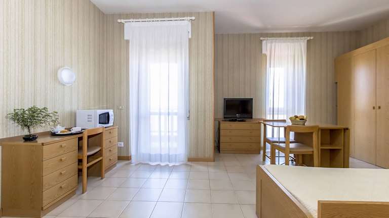 Das Hotel Residence Ulivi E Palme bietet 122 Zimmer auf 6 Etagen, die über einen Aufzug erreichbar sind. Die Zimmer sind komfortabel und klimatisiert. Sie verfügen über einen TV und ein großes Badezimmer mit Dusche und Fenstern. Wenn Sie ein Zimmer inklusive Frühstück buchen, können Sie das Frühstücksbuffet genießen. Die Studios sind mit einer Küchenzeile ausgestattet.