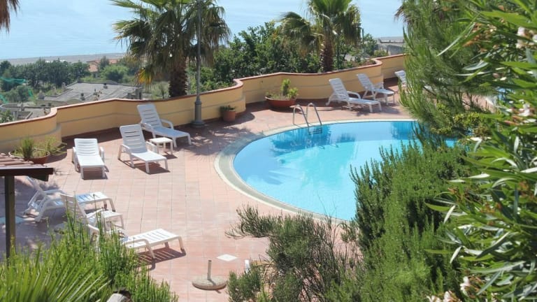 Das Hotel liegt in Praia a Mare, direkt am Sandstrand, in ruhiger Lage. Die Umgebung bietet Zugang zu schönen Stränden und Erholungsräumen.