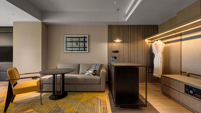 Die Zimmer sind klimatisiert und verfügen über eine individuelle Regelung von Heizung und Kühlung. Zur Ausstattung gehören ein Flachbild-TV, ein Safe, eine Minibar sowie eine Tee-/Kaffeemaschine. Die Badezimmer sind mit Dusche und Badewanne ausgestattet, und es stehen Haartrockner sowie Bademäntel zur Verfügung. Hausschuhe sorgen für zusätzlichen Komfort, und es sind Nichtraucherzimmer verfügbar.