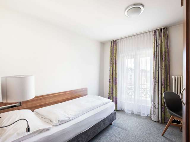 Jedes Zimmer im Hotel ist ausgestattet mit einem Schreibtisch, Kabel-TV mit mehr als 100 Kanälen, einem eigenen Bad sowie einem Bett mit einer Matratze der Marke Robusta Swiss Flex. Zudem steht kostenfreies Wifi zur Verfügung.
