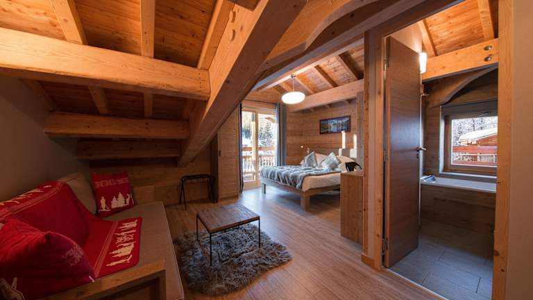 Jedes moderne Zimmer ist mit freiliegenden Holzbalken ausgestattet und bietet einen Balkon mit Blick auf die Skipisten. Die Zimmer verfügen über WLAN und sind gemütlich eingerichtet.