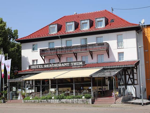 HALLO UND HERZLICH WILLKOMMENim Hotel Restaurant Thum in Balingen. Wir bieten den idealen Standort für alle, die in der Region Zollern-Alb geschäftlich und privat unterwegs sind. Die freundliche Atmosphäre des Hauses lädt zum Verweilen ein. Unsere Küche bietet Ihnen eine große Auswahl an schwäbischen und internationalen Spezialitäten. Weit über die Grenzen des Zollern-Alb-Kreises hinaus ist unsere Küche für diese Kochkunst bekannt. Wir freuen uns, Sie schon bald als Gast bei uns verwöhnen zu dürfen. Ihre Familie Meyer und Team