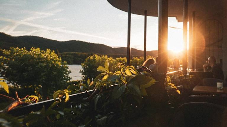 Wunderschön gelegenes Hotel direkt am Rhein, passendes Ambiente zum malerischen Weinort Leutesdorf. Sehr schön Terrasse mit Blick auf den Geysir Andernach