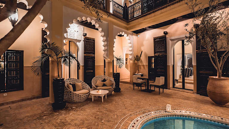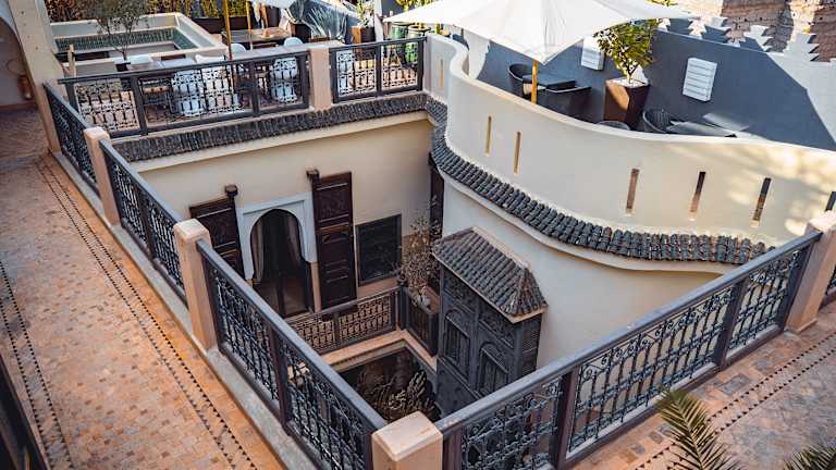 Das Hotel befindet sich im Zentrum des historischen Viertels von Marrakesch (der Medina) und ermöglicht den Gästen den Zugang zu den berühmten Souks sowie dem Jam El Fna Platz in wenigen Minuten. Der Internationale Flughafen Menara liegt etwa 10 km entfernt.