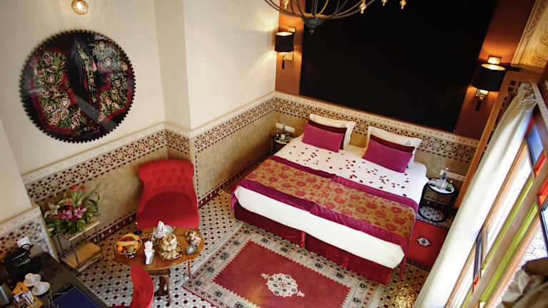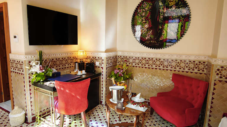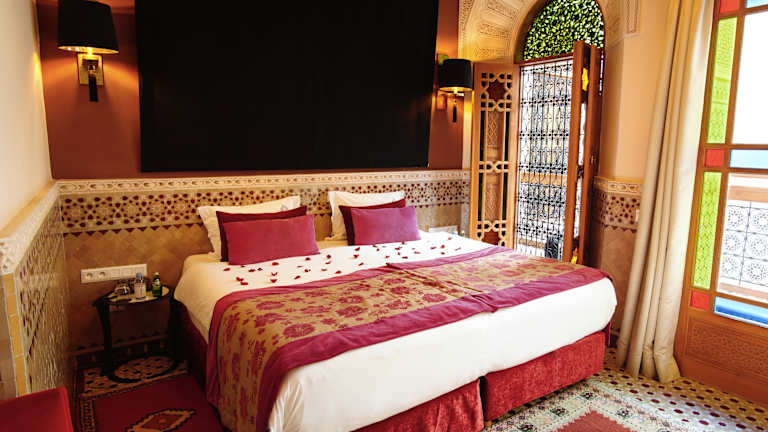 Das Hotel liegt am Eingang zur Medina von Fes, etwa 2,5 km vom Stadtzentrum entfernt. Sehenswürdigkeiten wie die Al-Quaraouiyine-Moschee und das Nejjarine-Holzmuseum sind zu Fuss in rund 15 bzw. 20 Minuten zu erreichen. Weitere Orte wie Bhalil (25 km) und Immouzer (30 km) sind ebenfalls gut erreichbar, während Meknes etwa 60 km entfernt ist. Die nächsten Flughäfen befinden sich in rund 2 bzw. 15 km Distanz.