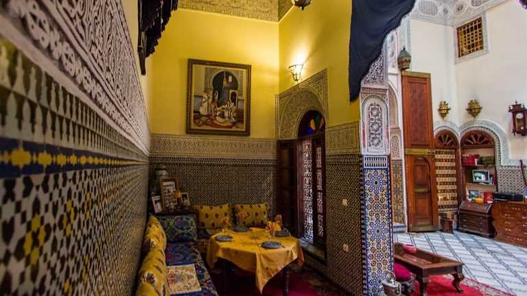 Das Hotel Riad Ibn Khaldoun hat 9 Zimmer und bietet ein heimeliges Ambiente mit mehrsprachigem Personal an der Rezeption, welches den Gästen jederzeit zur Verfügung steht. Zu den weiteren Dienstleistungen gehören eine Gepäckaufbewahrung, ein Safe, ein Geldautomat und ein Business-Center mit Faxgerät. Das Hotel bietet einen 24h-Sicherheitsdienst, Babysitterservice und eine Autovermietung an. WLAN ist kostenlos in den öffentlichen Bereichen verfügbar. Für Gäste stehen diverse Tagungs- und Auftaktmöglichkeiten zur Verfügung. Gestart wurde mit dem Betrieb im Jahr 1874, und die letzte Komplettrenovierung hat vor 5 Jahren stattgefunden. Die Unterkunft verfügt über eine Sonnenterrasse mit Pool, sowie einen TV-Raum und ein Spielzimmer.