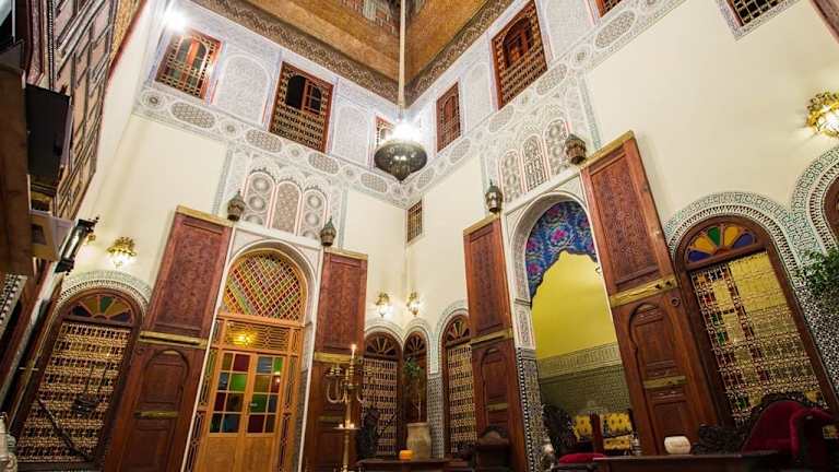 Das Hotel Riad Ibn Khaldoun befindet sich mitten im Herzen von Fes, unweit der Medina und in der Nähe von Denkmälern, Museen und Souks. Die Anreise gestaltet sich komfortabel, da ein Parkplatz nur 20 m entfernt liegt. Die Umgebung bietet verschiedene Geschäfte, darunter einen Supermarkt, sowie einen kleinen Garten und eine Terrasse zur Entspannung.
