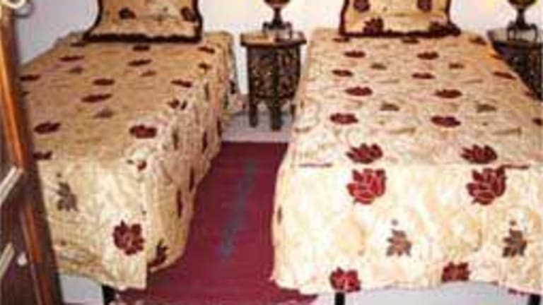 Les répartitions des chambres sur deux étages préservent l’intimité de chacun. Décorées dans le plus pur esprit marocain, vous offrent le charme et la douceur de l’Orient. Deux suites pouvant accueillir jusqu’au trois personne et quatre chambres (lits simples ou doubles) vous assurent l’hébergement le mieux adapté à votre situation. - suite Bahija : entre les deux coursives cette grande chambre offre un grand lit et une superbe méridienne dans un espace lumineux avec fenêtre balcon plongeant sur la piscine. La décoration de cette chambre et la salle de bain en taddelakt bleu marin donnent une élégance et un raffinement à cette pièce, rehaussé par l'éclat de la vasque en cuivre jaune. - suite Malika : Cette mini suite, propose un grand lit et un petit lit, Elégante et raffinée, cette chambre est climatisée et sécurisée. La salle de bain est en Taddelakt couleur safran, Sa situation au niveau du patio lui apporte la fraîcheur des grenadiers et de la piscine - chambre Khadija : Au 1er étage sur la coursive, cette chambre double à deux lits, Joliment décorée dans le style marrakchie, cette chambre et sa salle de bain en taddelakt zouaké, sont dans les tons rouge Marrakech . - chambre Laila : au 1er étage cette 2 eme chambre offre un grand lit. Dans les tons améthyste, cette chambre allie beauté et douceur d'y séjourner. Surplombant la piscine, cette chambre inscite à la détente et au repos. -chambre Samia : En RC, cette autre petite chambre, dont la salle de bain est couleur safran allie charme et simplicité Simple mais confortable,