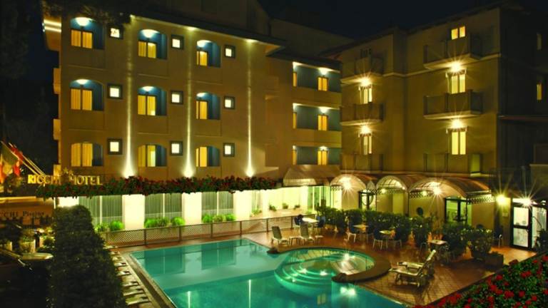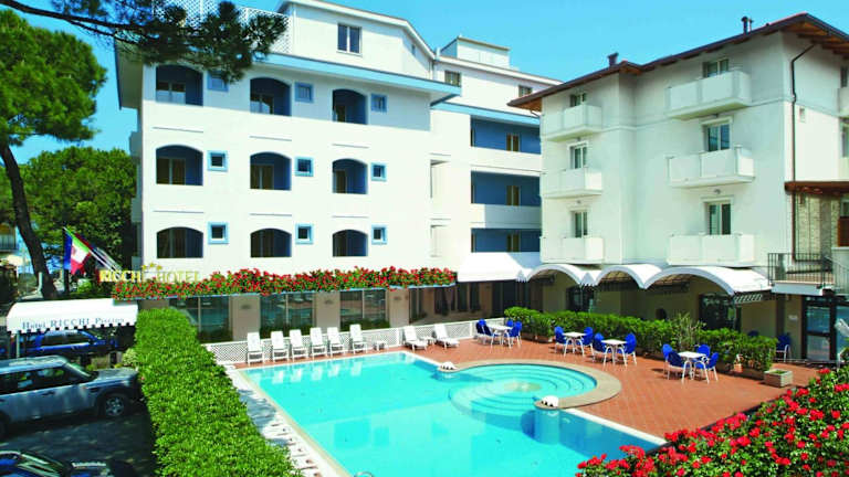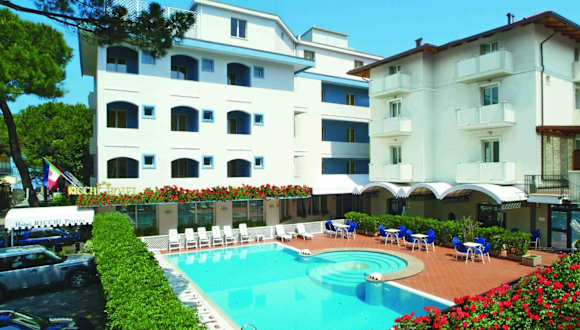 Das Hotel Ricchi befindet sich in Rimini, direkt am Strand, nur 250 m von den Sandstränden entfernt. Die Umgebung bietet die Möglichkeit, die Region auf verschiedenen Wegen zu erkunden, auch per Velo. Das Hotel liegt zudem 1,5 km vom Bahnhof Rimini und 15 Fahrminuten vom internationalen Flughafen Rimini entfernt.