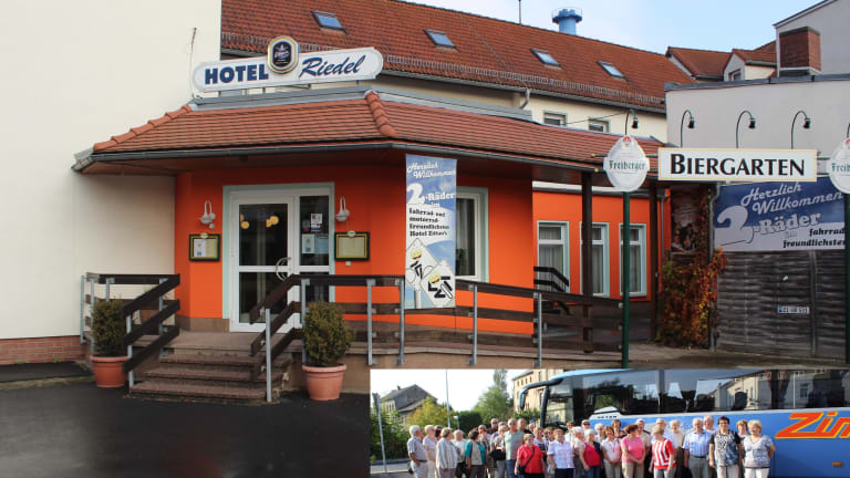 Das 3-Sterne Hotel Riedel in Zittau ist für einen schönen Aktiv- oder Wellnessurlaub eine gute Wahl. Anziehungspunkte, wie zum Beispiel die Burg Grabstejn, das Schmetterlings- und Reptilienhaus Jonsdorf, das Zittauer Gebirge sowie das Jagdschloss Hörnitz Oybin, sind nach rDas Hotel Riedel wurde im Jahre 1990-1993 neu erbaut und besitzt 40 modern eingerichtete Einzel sowie Doppelzimmer. Es befindet sich im südlichen Teil von Zittau, nahe der Grenze zu Polen und Tschechin. Sie erreichen uns aus allen Richtungen, über die B178, B96, B99 über den Stadtring in Richtung Reichenberg/Liberec. Eine komplette Umgestaltung der Rezeption und Erneuerung der Gasträume geschah 2003. Die Gaststätte mit 80 unter den schönen Sternenhimmel oder die urig rustikale Scheune mit 20 Plätzen laden in gemütlicher Atmosphäre ein. Nach Ihren Wünschen organisieren wir gern Feierlichkeiten und Veranstaltungen jeglicher Art. Zimmer und Hotelfassade bekamen ein neues Farbbild, sowie Neuausstattung von TV Föhn und kostenloses WLAN konnten wir 2014 verzeichnen. Der Höhepunkt jedoch ist 2015 mit den Neubau eines wunderschönen Biergarten mir 45 Plätzen geworden. Unser Haus zeichnet sich vor allem durch eine sehr gute einheimische Küche, Oberlausitzer Spezialitäten, ein großzügiges Frühstückbuffet mit hausgeschlachteten Wurst und Schinkenwaren vom Chef selbst hergestellt und natürlich durch sein freundliches Personal aus. Das Hotel Riedel ist ein Fahrrad und Motorrad freundliches Haus. Eine kostenlose und abschließbare Unterbringung der Fahrzeuge ist vor Ort. Der Fahrrad Oder Neise Weg beginnt direkt am Hotel. Für Motorradfreunde bieten wir geführte Touren und Tourenvorschläge an. Wer Urlaub hier erleben möchte ist genau richtig, die schöne Oberlausitz und das Zittauer - Gebirge lädt gern zum verweilen ein. Unser Hotel ist ein sehr guter Ausgangspunkt für Reisebustouristik, wo wir Tagesausflüge gern mit organisieren und bei Bedarf einen Reiseleiter zur Verfügung stellen. Auch für Geschäfts und Kurzreisende stehen wir mit Rat und Tat zur Seite. Es sind auch ausreichende Parkplätze vorhanden, die sich direkt vor dem Haus befinden. Natürlich ein Mus, mit der Zittauer Schmalspurbahn einmal eine Fahrt nach den schönen Jonsdorf oder Oybin mit Besuch auf der Burg. Ein Bummel durch die historische Innenstadt, mit Besichtigung des Großen Zittauer Fastentuches lohnt sich immer. Besuchen Sie die schöne Stadt Zittau mit ihrer wunderschönen Umgebung - und wir bewirten, beherbergen und beraten Sie gern bei Ihrem Aufenthalt. Ihr freundliches Team vom Hotel Riedelelativ kurzer Fahrentfernung zu erreichen.