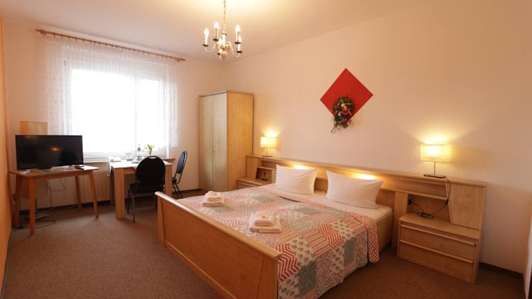 Im Zimmer steht für Sie ein Badezimmer zur Verfügung. Im privaten Bad erwartet Sie ein Haartrockner. Zudem sind ein Telefon und ein Fernseher ins Zimmerinventar integriert. In allem Zimmern und im ganzem Hause sowie im Biergarten können Sie sich in das kostenlose WLAN einwählen.