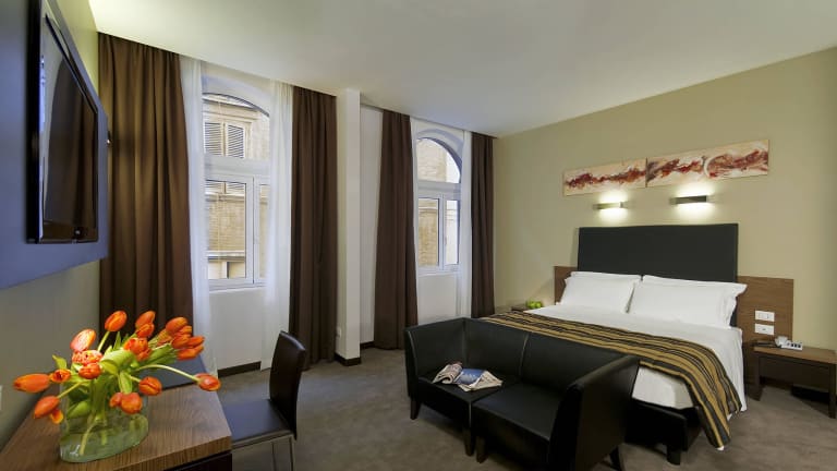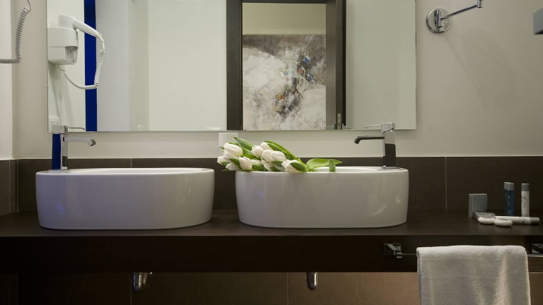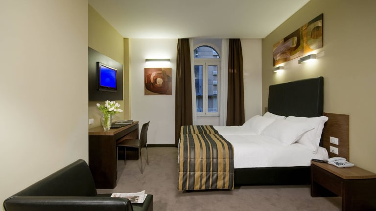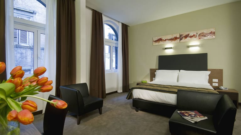 Die klimatisierten Zimmer im Hotel Rinascimento bestechen durch modernes Design und sind ausgestattet mit einem Doppelbett, Safe, Minibar sowie einem Schreibtisch. Über eine Tee-/Kaffeemaschine, Kühlschrank und WiFi (ohne Gebühr) verfügen die Zimmer ebenfalls. Die Badezimmer sind mit Dusche, Badewanne und Bidet ausgestattet. Hausschuhe sowie Kosmetikartikel stehen den Gästen zur Verfügung. Es sind auch rollstuhlgerechte Zimmer buchbar.
