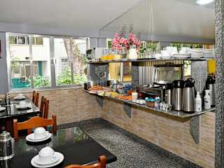 Im Frühstücksraum des Hotels steht jeden Morgen ein Frühstücksbuffet zur Verfügung. Dieses umfasst frisches Obst, Brot, Aufschnitt sowie verschiedene heisse und kalte Getränke.
