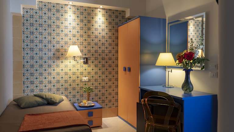 Die schlicht und zweckmässig eingerichteten Zimmer sind mit hellen Fliesenböden ausgestattet und verfügen über ein eigenes Bad. In jedem Zimmer steht kostenfreies Wifi zur Verfügung. Einige Zimmer bieten einen Balkon oder eine Terrasse, während andere mit seitlichem Meerblick aufwarten.