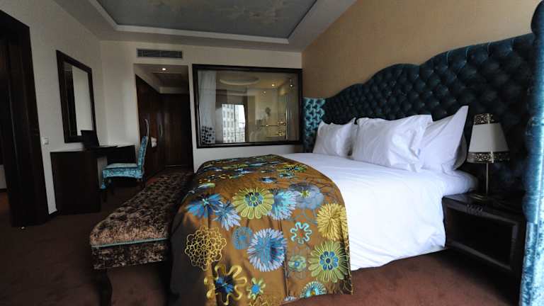 Die Zimmer verfügen über eine Klimaanlage, einen Balkon, ein Doppelbett, ein Queensize-Bett oder ein Kingsize-Bett sowie ein Badezimmer mit Dusche, Badewanne und Bidet. Zudem sind eine Minibar, ein Schreibtisch und ein TV-Gerät vorhanden. Kostenloses WLAN gehört zur Standardausstattung. Hausschuhe und Kosmetikartikel sind ebenfalls in den Badezimmern verfügbar. Es sind auch rollstuhlgerechte Zimmer mit barrierefreiem Bad verfügbar.