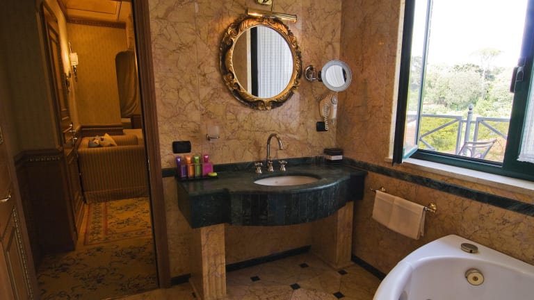 Die Zimmer sind mit Klimaanlage, Sat-TV, einem Safe, einer Minibar sowie einem Schreibtisch ausgestattet. Die Badezimmer verfügen über eine Dusche, eine Badewanne und ein Bidet. Hausschuhe, Kosmetikartikel und Bademäntel stehen den Gästen zur Verfügung. Es sind Familien- und Nichtraucherzimmer vorhanden.