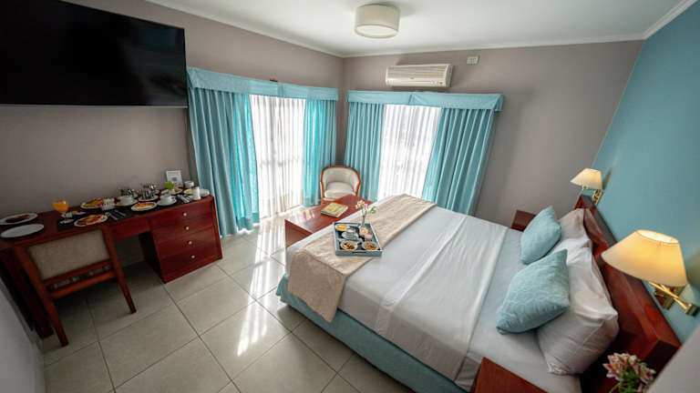 Die Zimmer bieten eine angenehme Bequemlichkeit und sind mit Heizung, Internetzugang und Kabel-TV ausgestattet. Die meisten Zimmer verfügen über einen Balkon. Zur Ausstattung gehören Teppichböden, ein Doppelbett sowie ein Safe für Wertsachen. Badezimmer sind mit Dusche, Badewanne und Bidet ausgestattet, und Kosmetikartikel stehen zur Verfügung. Es werden auch Familien-, Nichtraucher- und Raucherzimmer angeboten.