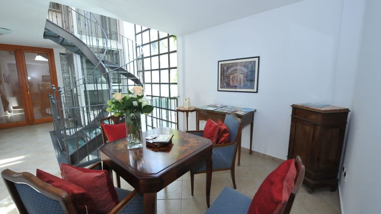 Das Hotel Rivoli Sorrento befindet sich im historischen Zentrum von Sorrent, nur wenige Gehminuten vom Hafen entfernt. Von hier aus können Sie bequem die Inseln Capri und Ischia mit dem Boot erreichen. Die Lage des Hotels ermöglicht es Ihnen auch, die umliegenden Sehenswürdigkeiten und Restaurants bequem zu erkunden. Der Bahnhof Circumvesuviana Sorrento mit Verbindungen nach Neapel ist ebenfalls in der Nähe.