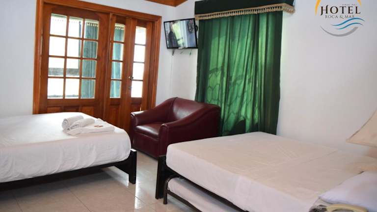 Die Zimmer im Hotel Roca & Mar sind mit einem Kleiderschrank, Bettwäsche und Handtüchern ausgestattet. Einige Zimmer bieten eine Dusche und kostenlose Pflegeprodukte sowie eine Aussicht über die Stadt. Die Unterkunft bietet eine tägliche Reinigung der Zimmer.