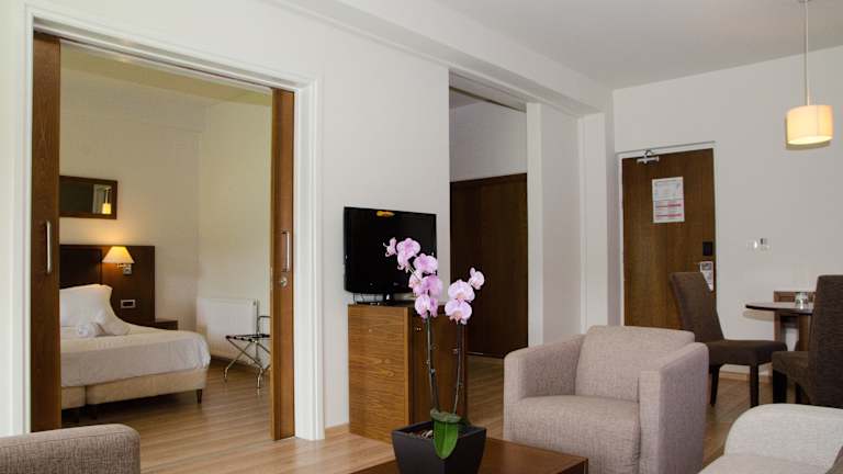Das Rodon Hotel and Resort verfügt über 154 Zimmer, die sich auf 3 Etagen verteilen und über einen Aufzug erreichbar sind. Die Zimmer sind modern und komfortabel eingerichtet und bieten Annehmlichkeiten wie Klimaanlage, Safe, Minibar, Sat-TV, WLAN und einen Balkon oder eine Terrasse. Die Badezimmer sind mit einer Dusche oder Badewanne und einem Haartrockner ausgestattet. Rollstuhlgerechte Zimmer mit barrierefreien Badezimmern sind ebenfalls verfügbar.