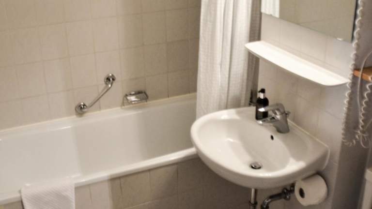 Das Hotel im 1.OG hat sicherlich schon bessere Zeiten erlebt, für eine Nacht sicherlich möglich. Das DZ als EZ war geräumig, das Bad klein und sanierungsbedürftig. Ich empfand das Preis-Leistungsverhältnis nicht ausgewogen.