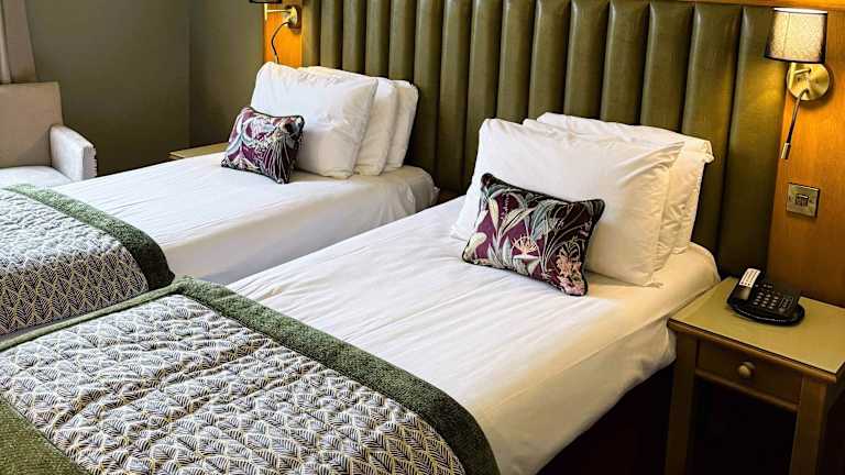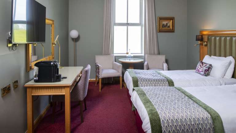Die Zimmer sind mit Teppichböden ausgestattet und bieten entweder ein Doppelbett oder ein Kingsize-Bett. Dazu gehören Annehmlichkeiten wie ein Safe, ein Schreibtisch, ein Minikühlschrank sowie eine Tee-/Kaffeemaschine. Die Badezimmer verfügen über entweder eine Dusche oder eine Badewanne, und einige Zimmer sind rollstuhlgerecht ausgestattet.