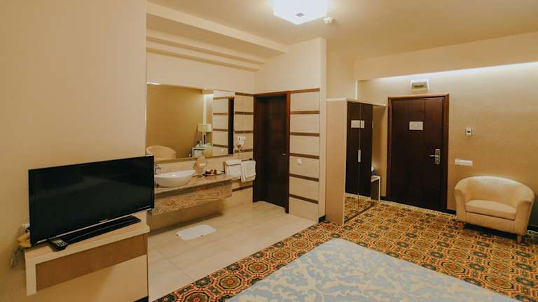 Die Zimmer im Hotel sind klimatisiert und elegant eingerichtet. Sie bieten eine Minibar, einen Flachbild-TV und ein eigenes Bad mit kostenfreien Pflegeprodukten, Haartrockner, Hausschuhen und einem Bademantel. Einige Zimmer verfügen zusätzlich über ein Wohnzimmer.