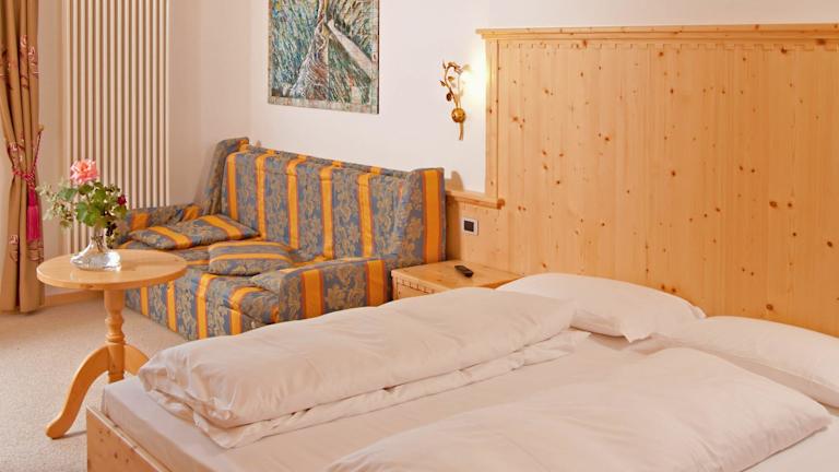 Die Zimmer im Hotel Rosa verfügen über ein angenehmes Raumklima durch eine Heizung, Holz- oder Teppichböden, einen Flachbild-Kabel-TV sowie einen Balkon mit Blick auf die umliegende Berglandschaft. Jedes Zimmer ist ausgestattet mit einem Safe, Schreibtisch und WiFi. In den Badezimmern befindet sich eine Dusche, ein Haartrockner sowie ein Telefon. Rollstuhlgerechte Zimmer mit barrierefreier Ausstattung sind ebenfalls verfügbar.