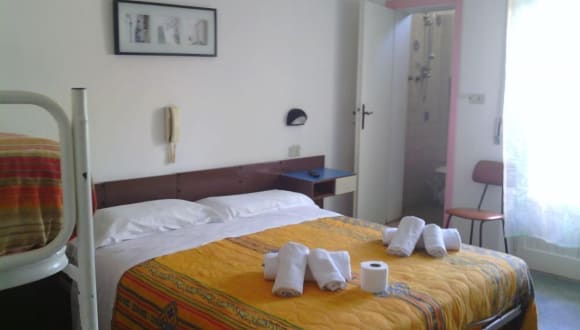 Die Unterkunft Hotel Rosa befindet sich in Rimini, nur 70 m vom Strand Spiaggia di Rivabella entfernt. In der Umgebung befinden sich mehrere bekannte Orte, wie der Strand Lido San Giuliano, der etwa 800 m entfernt liegt, und der Bahnhof Rimini, der in etwa 1,9 km erreichbar ist. Die Nähe zum Zentralstrand Rimini beträgt rund 2,7 km. Auch Stadio Romeo Neri und die Messe Rimini Fiera sind in der Umgebung, 3,5 km bzw. 3,9 km von der Unterkunft entfernt. Der nächste Flughafen, der Flughafen Federico Fellini, liegt 7 km entfernt.
