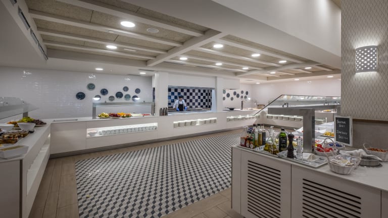 Das Hotel Rosamar Es Blau verfügt über ein Buffet-Restaurant welches auf mediterrane und internationale Küche zum Mittag-und Abendessen spezialisiert ist. Darüber hinaus gibt es täglich Show-Cooking. Auf der Pool-Terrasse des Hotels Rosamar es Blau finden Sie die Pool Snack Bar, eine lässige Bar zum snacken oder Eis essen. Natürlich gibt es zur Erfrischung auch Getränke, Softdrinks oder Säfte so können Sie die warmen Temperaturen der Costa Brava voll geniessen. Das Restaurant Cafe Ferretti ist eine Cafeteria ideal für Sommerabende in Lloret de Mar: italienische Pizza, leckere Crepes zum Finger lecken, hausgemachtes Eis für jeden Geschmack, Kaffee, Cappuccino, Säfte, eisgekühlte Getränke, Frappes,Smoothies ... die beste Auswahl für jeden Geschmack!