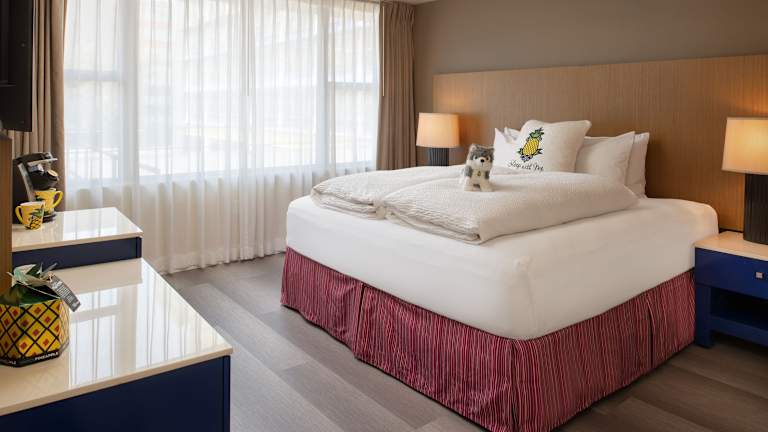Die Zimmer sind mit Klimaanlage und Heizung ausgestattet und bieten in der Regel einen Balkon. Zu den Annehmlichkeiten gehören ein Safe, ein Minikühlschrank, eine Tee-/Kaffeemaschine und ein TV-Gerät. Jedes Zimmer verfügt über ein Badezimmer mit Dusche und Badewanne sowie einen Haartrockner. Rollstuhlgerechte Zimmer stehen auf Anfrage zur Verfügung, und es werden auch Familien- und Nichtraucherzimmer angeboten.