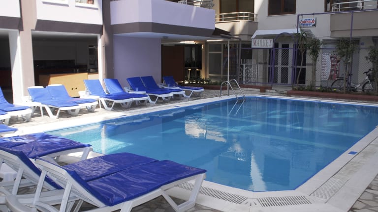 Das Hotel befindet sich in Alanya, nur wenige Schritte vom Sandstrand entfernt. Das Stadtzentrum mit seinen touristischen Highlights erreicht man nach ca. 1,5 km. In der Nähe befinden sich diverse Einkaufsmöglichkeiten, und der Zugang zum öffentlichen Nahverkehr ist ca. 80 m entfernt. Der Flughafen Gazipasa (GZP) ist ungefähr 40 km weit entfernt.