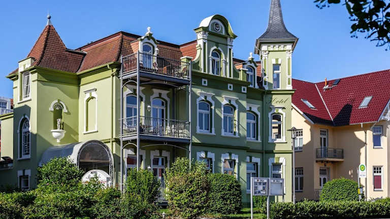 Das Hotel Rosenhof befindet sich im Ostseebad Kühlungsborn, nur 150 m von der Ostsee entfernt. Die historische Stadt Rostock ist in einer Distanz von 30 km gut erreichbar.