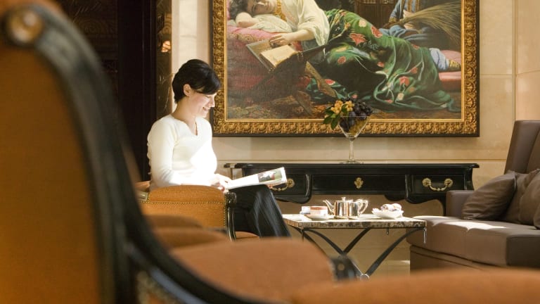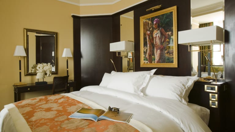 Das Royal Hotel Oran - MGallery by Sofitel ist ein luxuriöses 5-Sterne-Hotel im Herzen von Oran. Es bietet erstklassige Einrichtungen wie einen Wellnessbereich, kostenloses WLAN und einen Concierge-Service. Genießen Sie französische Küche in einem der beiden Restaurants und entspannen Sie im Dampfbad oder im Fitnessbereich. Das Hotel bietet zudem einen kostenlosen Flughafentransfer und eine günstige Lage in der Nähe von Sehenswürdigkeiten wie der Kathedrale Sacré-Coeur und dem Kulturpalast.