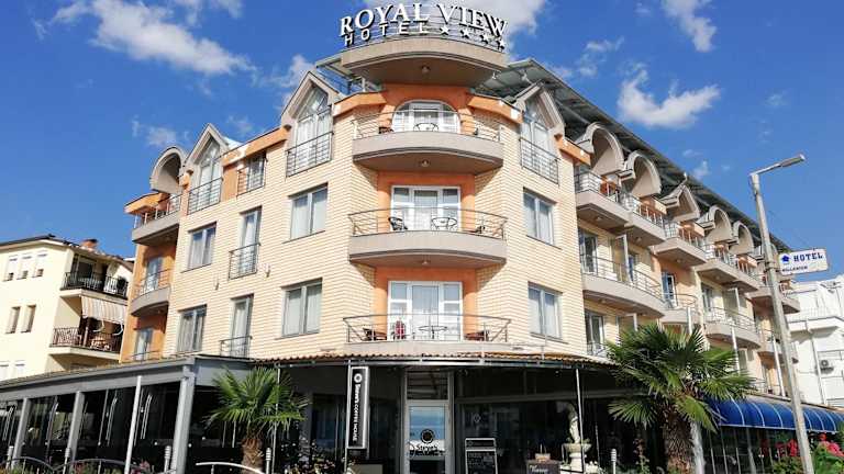 Das Hotel Royal View liegt am Ufer des Ohridsees, nur 200 m vom Stadtzentrum Ohrid entfernt. Die Umgebung bietet zahlreiche historische Denkmäler und Kirchen, die bequem in wenigen Minuten zu Fuss erreichbar sind.