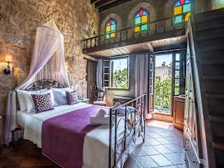 Das S. Nikolis Historic Boutique Hotel in Rhodos ist ein charmantes 4-Sterne-Hotel in der Altstadt von Rhodos. Es bietet eine ideale Lage, nur wenige Gehminuten von Sehenswürdigkeiten wie dem Uhrturm und dem Großmeisterpalast des Johanniterordens entfernt. Das Hotel verfügt über 15 individuell gestaltete Zimmer mit modernen Annehmlichkeiten wie Kühlschrank und Flachbildfernseher. Die Gäste können den schönen Ausblick von der Dachterrasse und dem Garten genießen oder sich im Innenpool und Whirlpool entspannen. Das Hotel bietet auch ein kostenloses nach Wunsch zubereitetes Frühstück und eine Bar/Lounge.