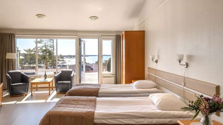 Die Zimmer im Hotel Saaristokylpylä Kasnäs sind mit einer Klimaanlage, einem Flachbild-TV, einem Schreibtisch sowie einem eigenen Badezimmer ausgestattet. Jedes Zimmer verfügt über Bettwäsche, Handtücher und eine Terrasse mit Gartenblick. Zudem sind die Zimmer mit einem Kleiderschrank eingerichtet.