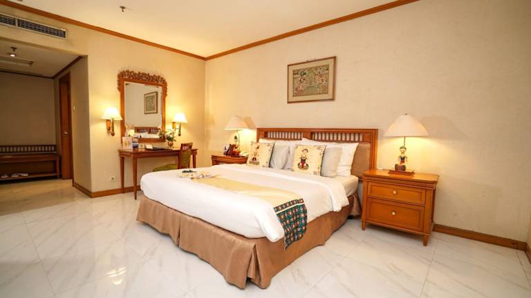 Das Hotel liegt zentral in Surakarta (Solo), nur wenige Fahrminuten vom Vergnügungspark Sriwedari entfernt. Der Flughafen Solo befindet sich in etwa 15 km Entfernung, während der Bahnhof Balapan nur ca. 500 m entfernt ist.