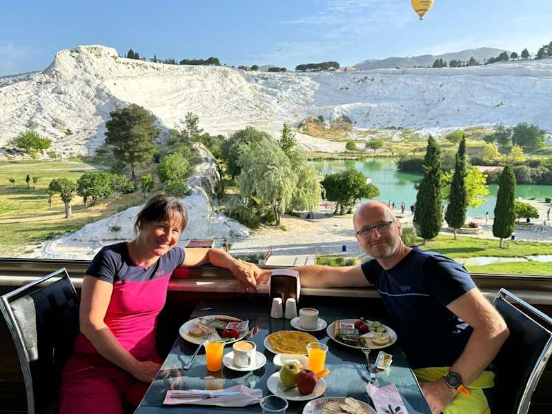 Das Hotel Sahin ist eine ideale Wahl für Reisende, die die atemberaubenden Sinterterrassen und den See von Pamukkale erkunden möchten. Mit seiner günstigen Lage, nur 20 m von den Hauptattraktionen entfernt, bietet das Hotel einen Außenpool und eine Terrasse mit herrlichem Blick auf die Sinterterrassen und den See. Die Zimmer sind komfortabel eingerichtet und einige bieten einen eigenen Balkon mit Blick auf die Terrassen. Kostenloses WLAN ist in allen Zimmern verfügbar. Beginnen Sie Ihren Tag mit einem traditionellen türkischen Frühstück im Hotel und genießen Sie köstliche gegrillte Speisen, Fleischbällchen, Gemüse und Forellen im hoteleigenen À-la-carte-Restaurant. Entspannen Sie sich in der Bar mit Terrasse und genießen Sie Ihre Getränke und Mahlzeiten mit Blick auf den See und die Sinterterrassen. Das UNESCO-Weltkulturerbe Hierapolis ist nur wenige Schritte vom Hotel entfernt und das Stadtzentrum von Denizli erreichen Sie in 17 km. Der Flughafen Denizli Çardak ist 70 km entfernt.