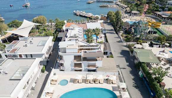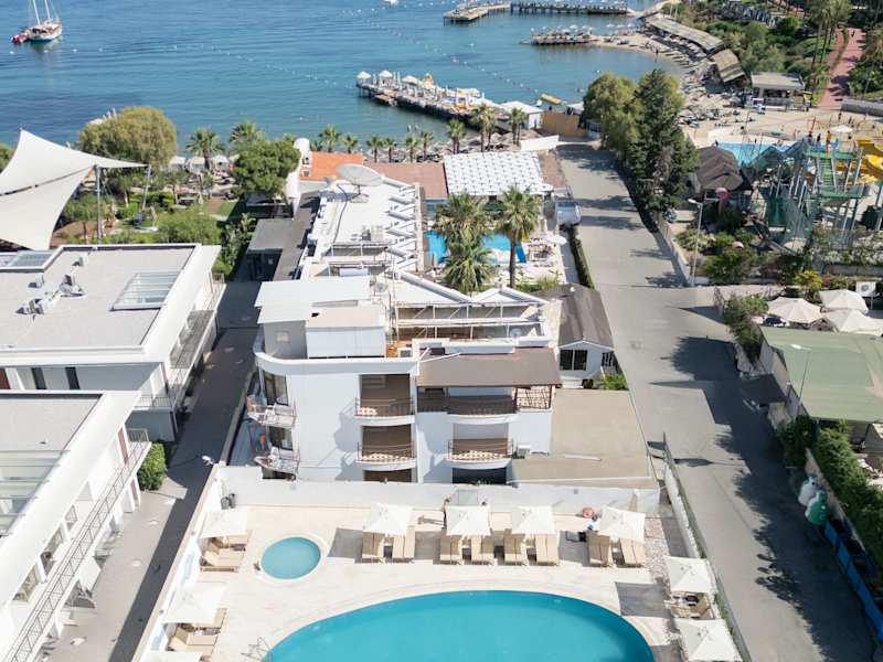 Das Hotel befindet sich in zentraler Lage im malerischen Ort Gümbet. Der schöne Sandstrand ist nur etwa 50 m entfernt. Das Stadtzentrum von Gümbet erreichen Sie in wenigen Minuten bequem zu Fuss. Dort gibt es diverse Einkaufs- und Unterhaltungsmöglichkeiten sowie die berühmte Bar-Strasse. Öffentliche Verkehrsmittel befinden sich in unmittelbarer Umgebung des Hotels. Die Transferzeit zum Flughafen Bodrum beträgt ca. 35 Minuten, bei einer Entfernung von 45 km.