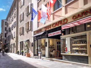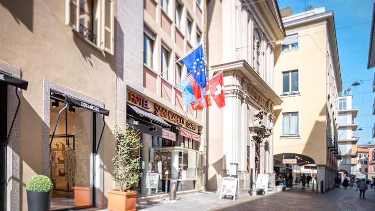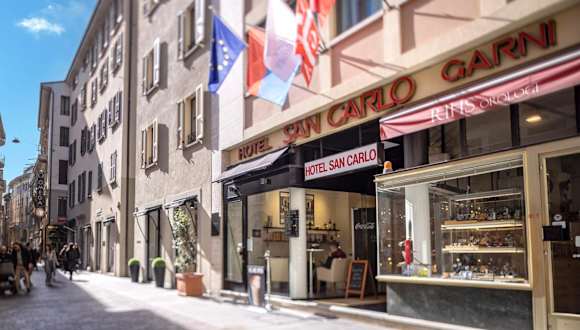 Das Hotel San Carlo Garni liegt an der charmanten Via Nassa, einer lebhaften Fussgängerzone, die von Boutiquen, Veranstaltungen und Märkten gesäumt ist. Die Unterkunft befindet sich nur wenige Schritte vom malerischen Seeufer und der praktischen Standseilbahn zum Bahnhof entfernt.